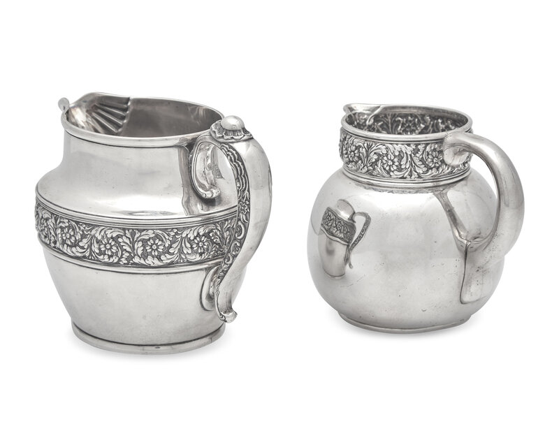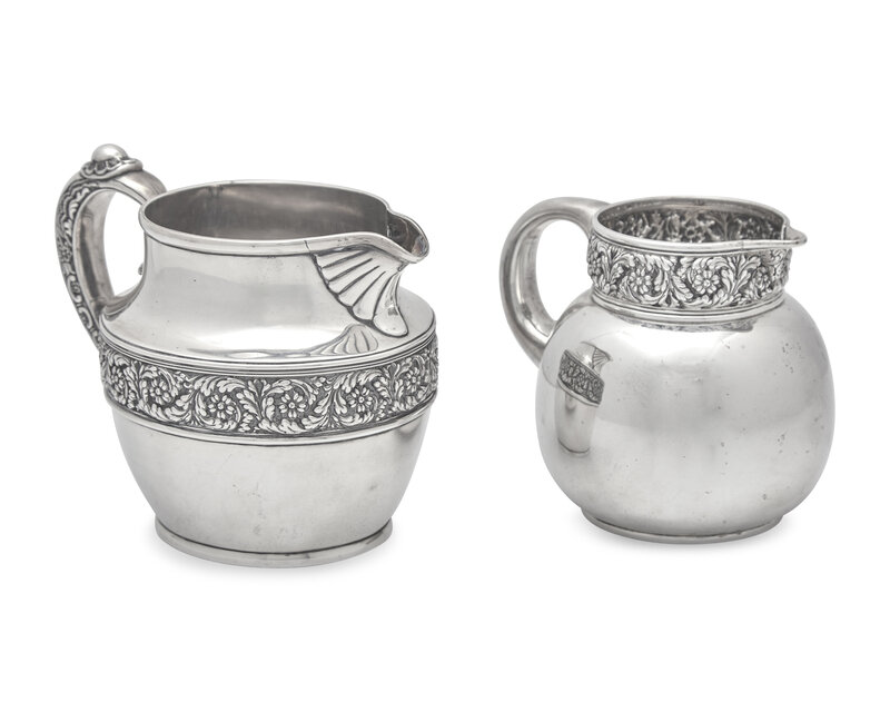 Two Sterling Silver Floral Repousse Pitchers, Tiffany & Co., New York, NY, Circa 1880-1890s