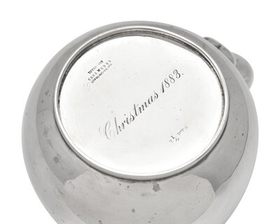 The first, circa 1880, engraved to underside, "Christmas 1883," marked, including "M" mark for Edward C. Moore (1873-1891); the second, marked, including "T" mark for Charles L. Tiffany (1892-1902), circa 1890s.