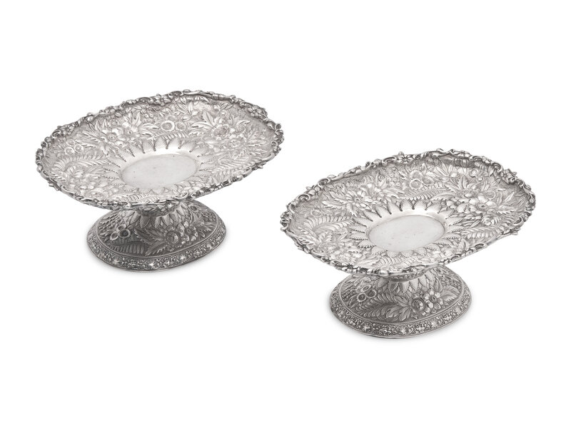A Pair of Sterling Silver Floral Repousse Tazzas, Tiffany & Co., New York, NY, Circa 1880