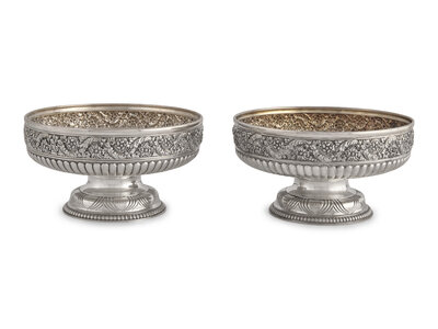 A Pair of Sterling Silver Floral Repousse Footed Bowls, Tiffany & Co., New York, NY, Circa 1880