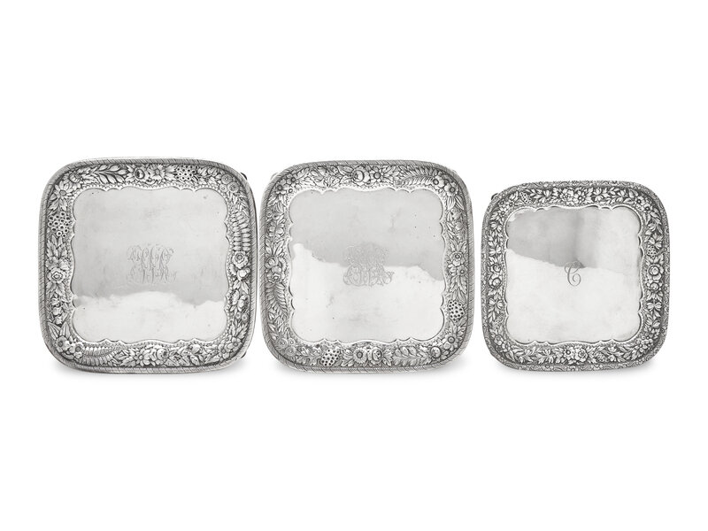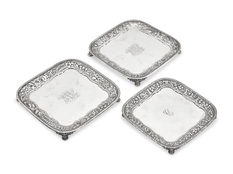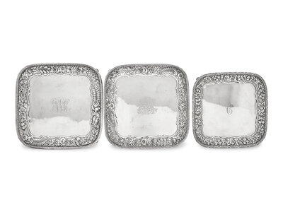 Three Sterling Silver Floral Repousse Salvers, Tiffany & Co., New York, NY, Circa 1880