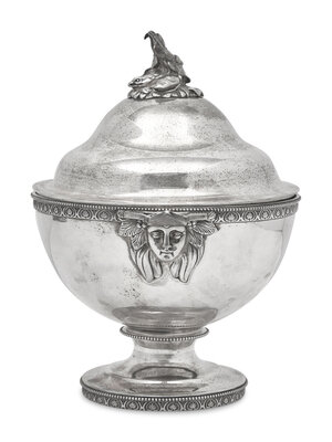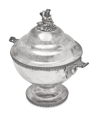A Sterling Silver Footed and Covered Bowl with Fish Finial, John C. Moore & Son, Tiffany & Co., New York, NY, 1854-1869