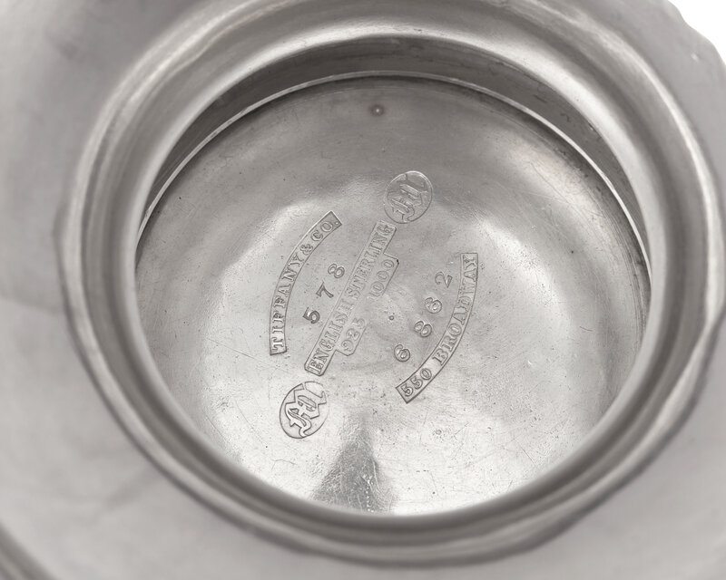 With two handles having masque-form supports, marked, including mark for John C. Moore & Son.