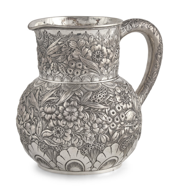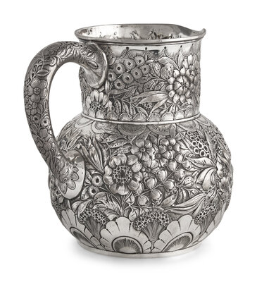 A Sterling Silver Floral Repousse Water Pitcher, Tiffany & Co., New York, NY, Circa 1880