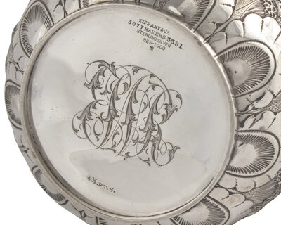 The underside engraved with monogram, "EWR," marked, including "M" mark for Edward C. Moore (1873-1891).