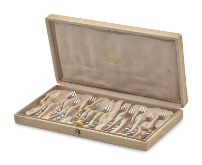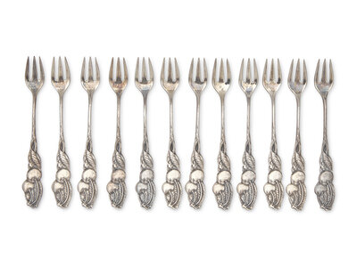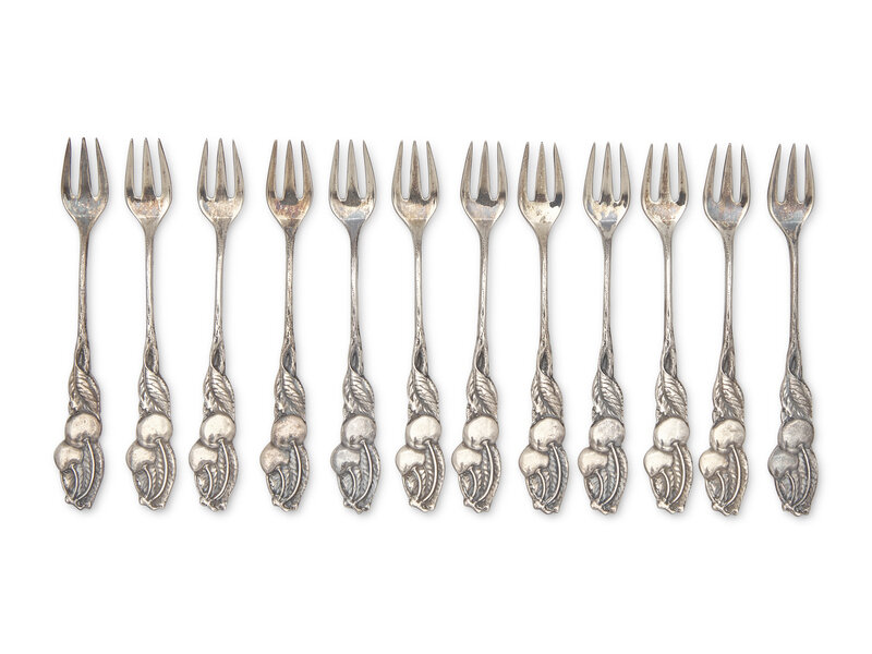A Cased Set of Twelve Sterling Silver Cocktail Forks in the "Cherry" Pattern, Tiffany & Co., New York, NY, Late 19th / Early 20th Century