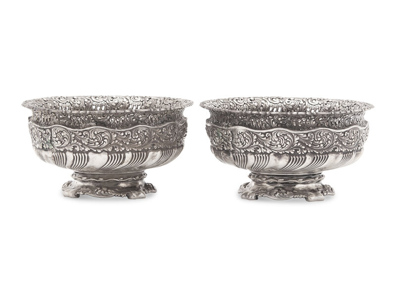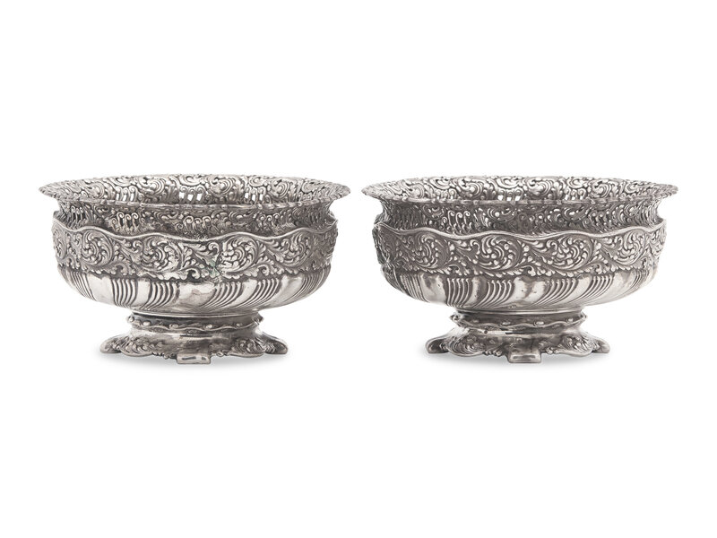 A Pair of Sterling Silver Repousse "Wave" Footed Bowls, Tiffany & Co., New York, NY, Circa 1880
