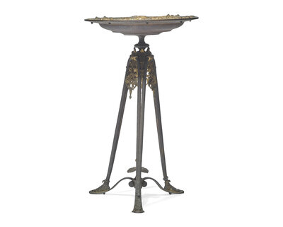 A Renaissance Revival Gilt and Patinated Metal Basin On Stand, by Jules-Paul Brateau (French, 1844-1923), Retailed by Tiffany & Co., New York, NY, Circa 1900