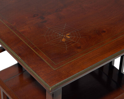 The top inlaid with mixed metal spider, web and fly, the feet ending in brass sabots.
