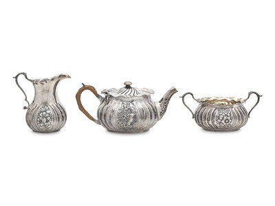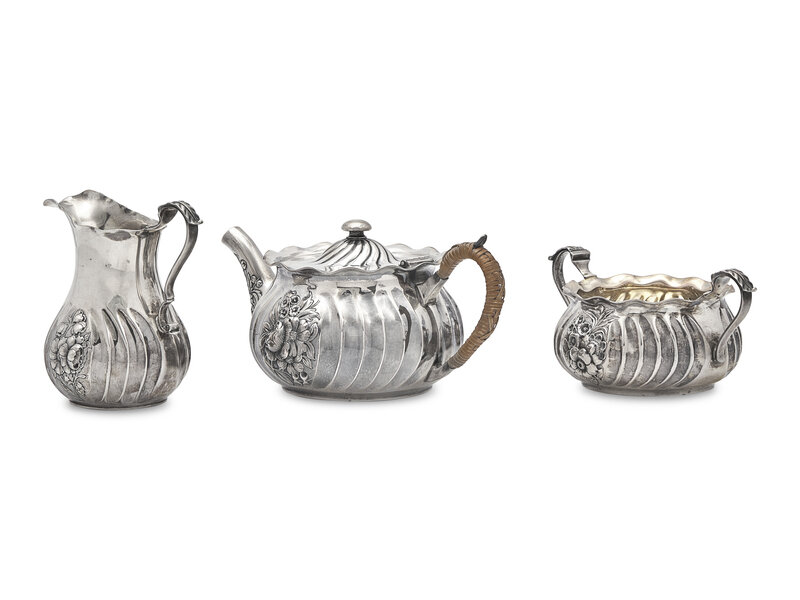 A Cased Three-Piece Sterling Silver Tea Service, Gorham Mfg. Co., Providence, RI, Date Mark for 1887