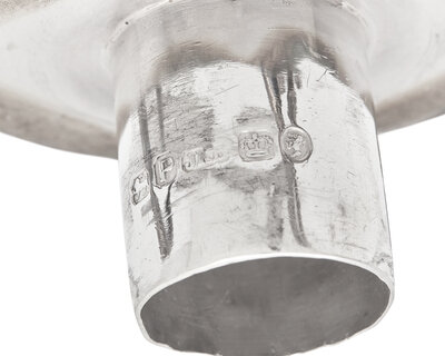 With detachable candle-arms and bobeches, each engraved with monogram, "EWR," to base, marked.