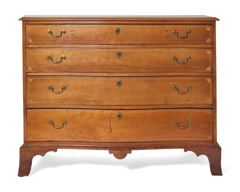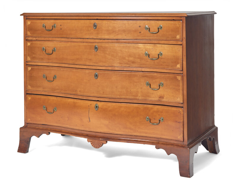 A Federal Serpentine Inlaid Cherrywood Chest of Drawers, New England, Circa 1800