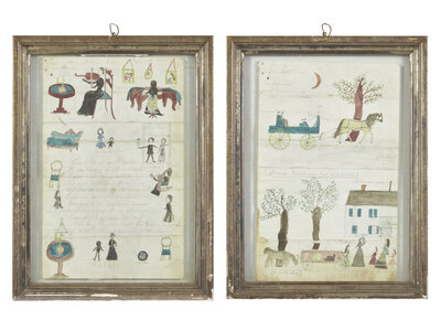 American School 19th Century, A Pair of Double-Sided Ledger Drawings