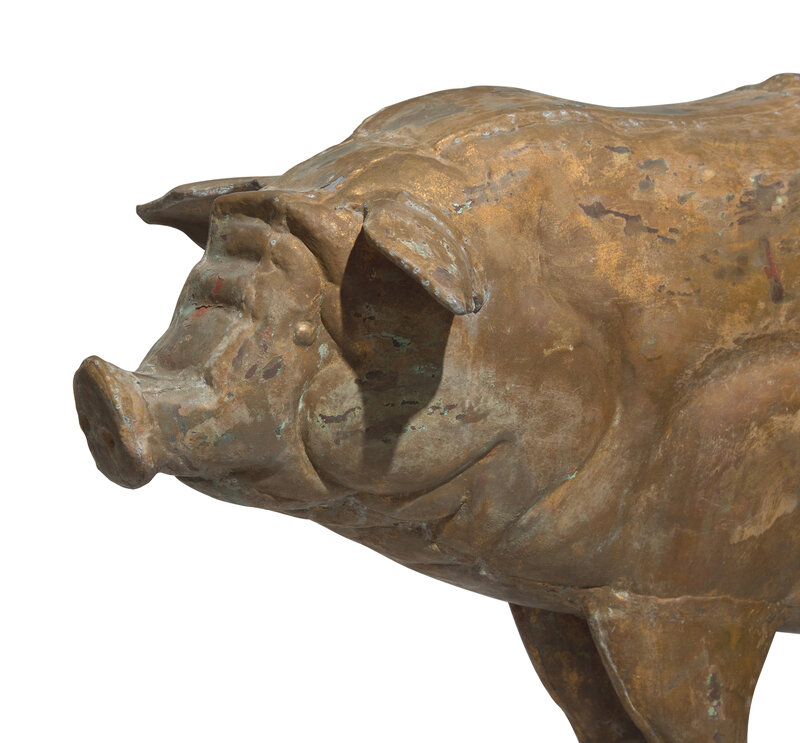 A Large Molded Gilt-Copper and Zinc Pig Weathervane, 20th Century