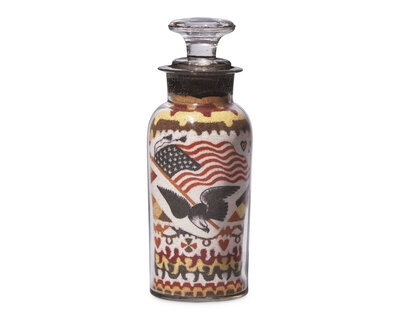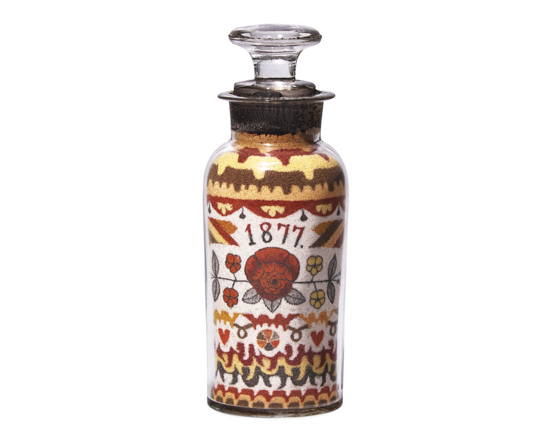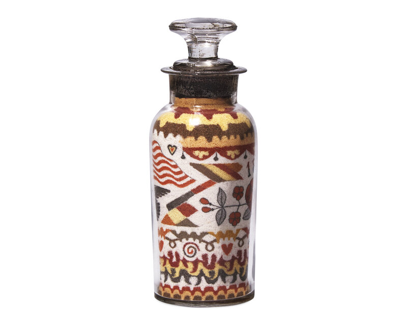 A Sand Art Bottle, Andrew Clemens (1857-1894), McGregor, Iowa, Dated "1877"