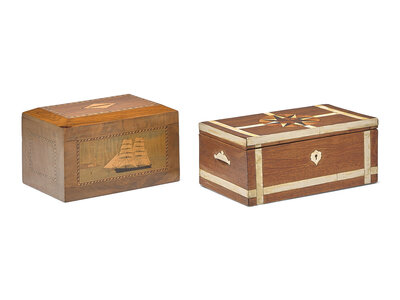 Two Nautical-Themed Inlaid Wooden Boxes, 19th / 20th Century