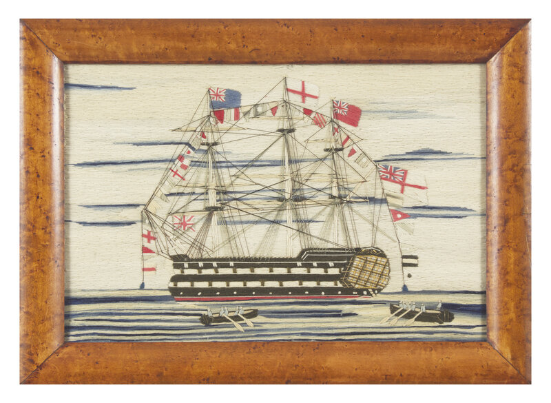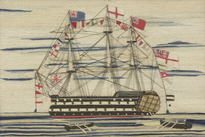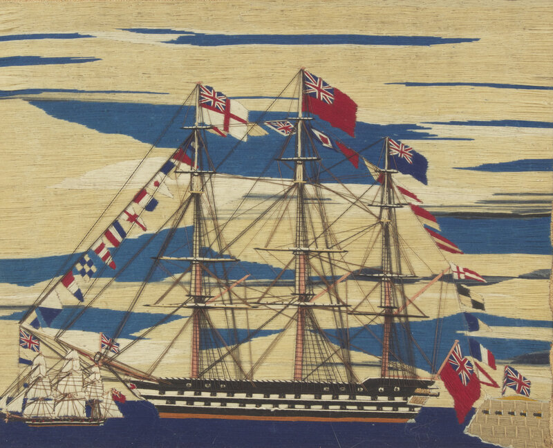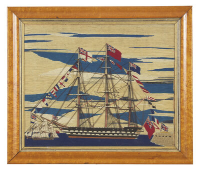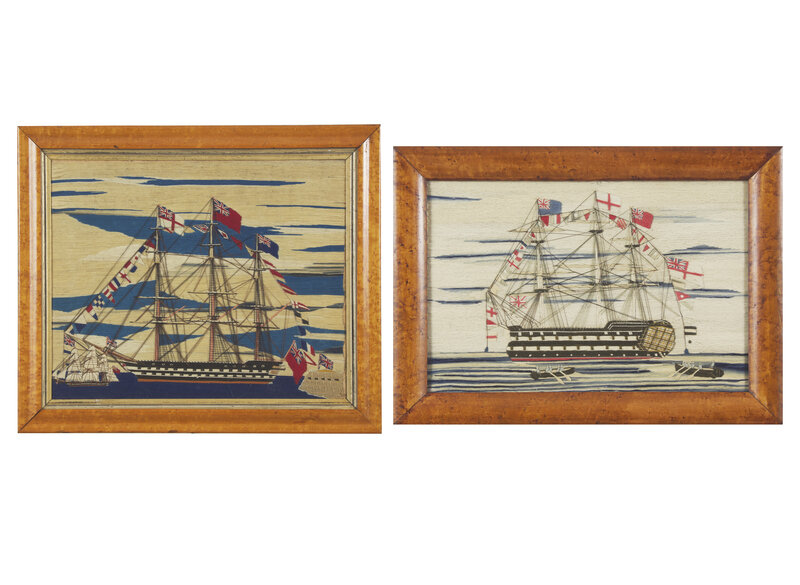 Two Sailor-Made Woolwork Pictures of Ships Festooned with Signal Flags, 19th Century