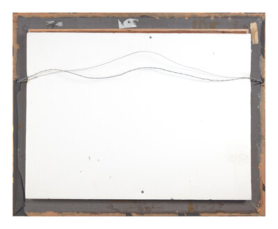 Oil, silk and various textiles on canvas, framed.