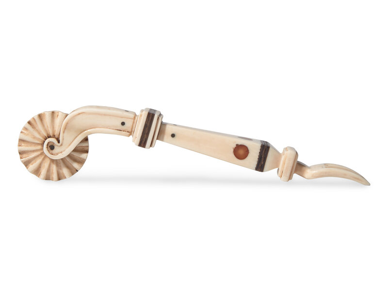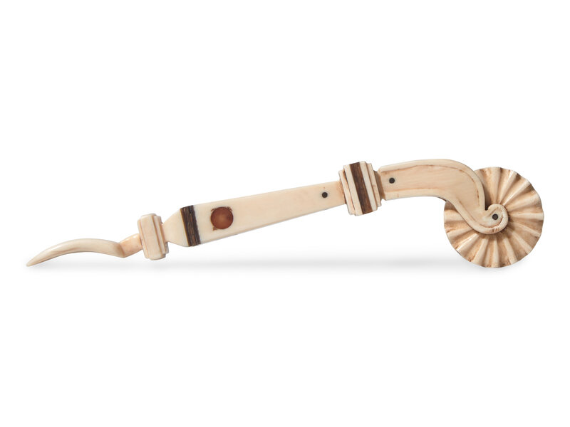 A Scrimshaw Baleen Inset Whale Bone Pie Crimper and Serving Fork, 19th Century