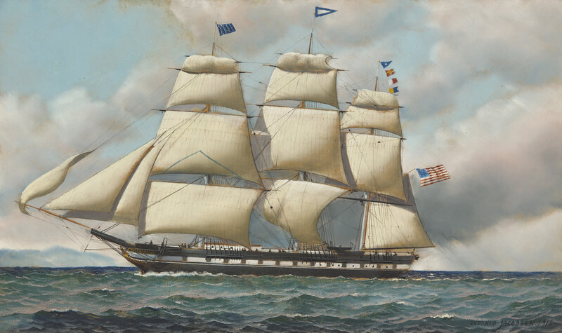 Signed and dated, "Antonio Jacobsen 1916," l.r., oil on canvas, framed.