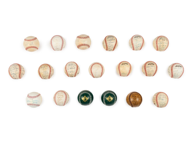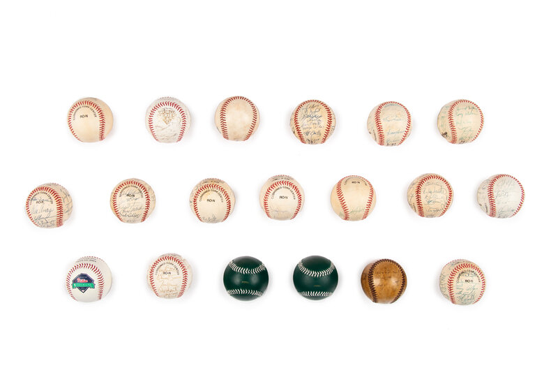Comprising team balls from the 1944 Philadelphia Phillies, 1992 San Diego Padres, 1992 Philadelphia Phillies, 1992 New York Mets, 1992 Pittsburgh Pirates, 1992 Atlanta Braves, 1992 Houston Astros, 1992 Cincinnati Reds, 1992 Montreal Expos, 1992 St. Louis Cardinals, 1992 Los Angeles Dodgers, 1992 Chicago Cubs, 1992 San Francisco Giants, 2009 National League Champion Philadelphia Phillies; and single player balls from Steve Carlton Scott Rolen, Philadelphia Phillies David Montgomery , and two Camden Yards 1993 All Star Game commemorative baseballs.