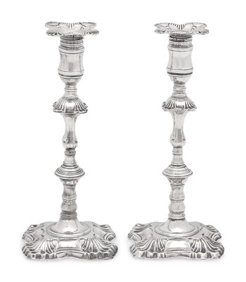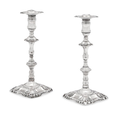 A Pair of George III Weighted Sheffield Plate Candlesticks, Late 18th Century