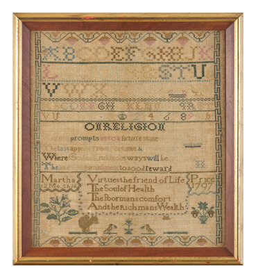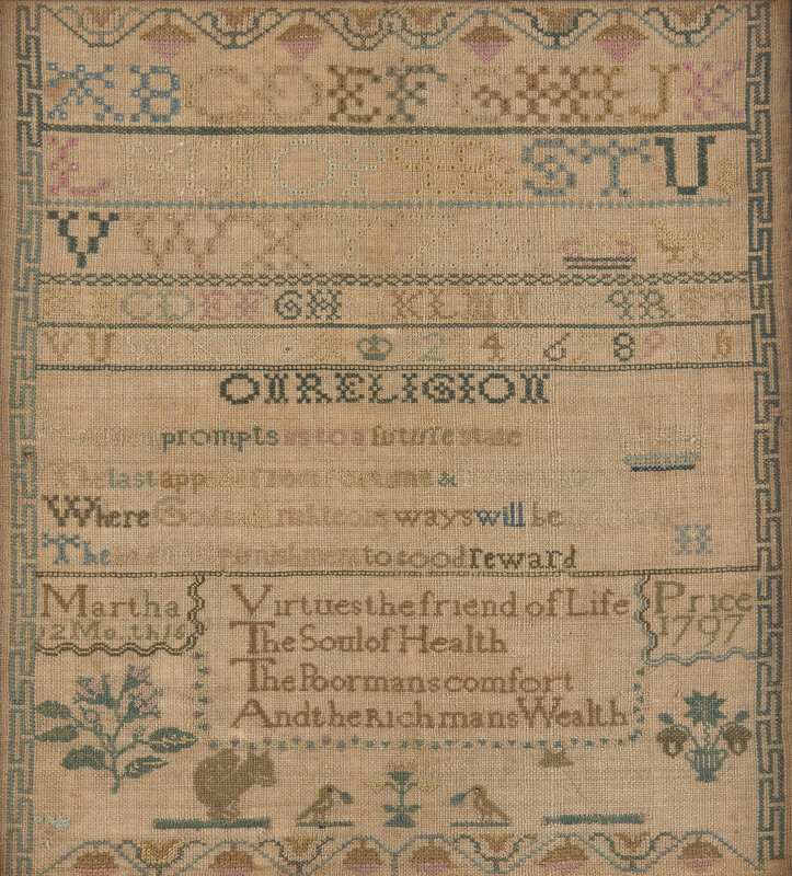 A Needlework Sampler, Worked by Martha Price, Philadelphia, PA, Dated "1797"