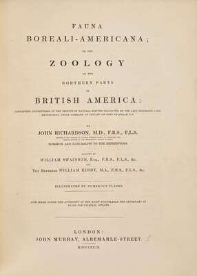 [Natural History] Richardson, John, and William Swainson, and William Kirby. Fauna Boreali-Americana; or the Zoology of the Northern Parts of British America...
