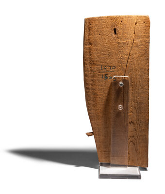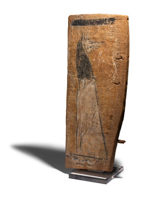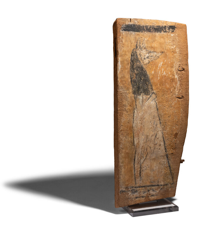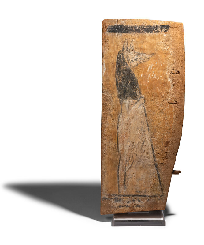 An Egyptian Painted Wood Sarcophagus Fragment with Anubis
