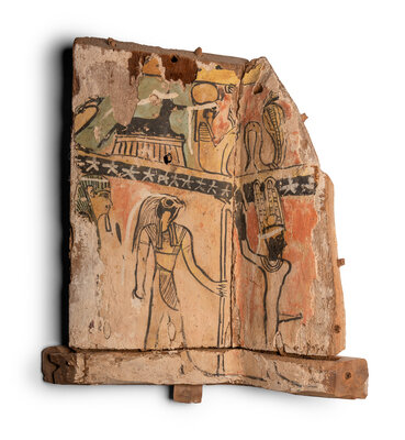 An Egyptian Painted Wood Sarcophagus Fragment