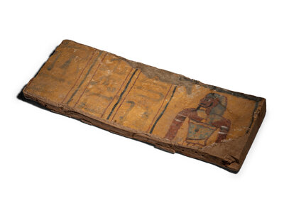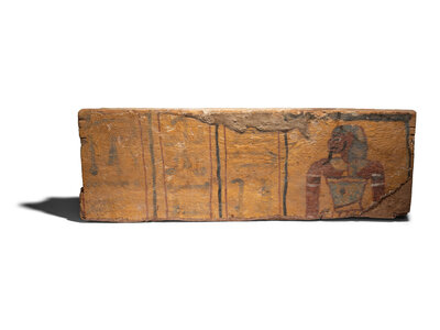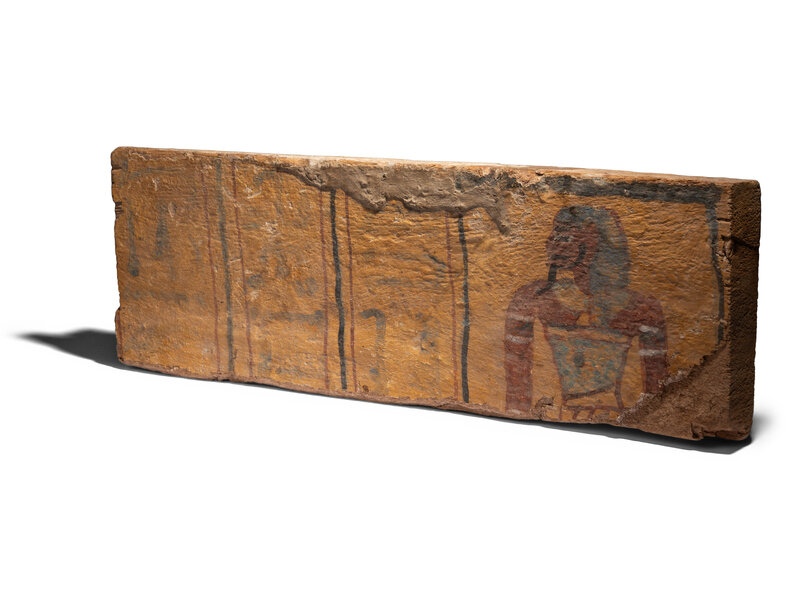 An Egyptian Painted Wood Sarcophagus Fragment with Imset