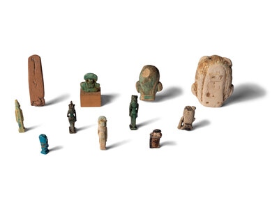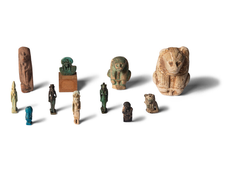 Eleven Egyptian Faience and Terracotta Sekhmet Amulets and Figures