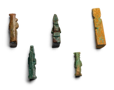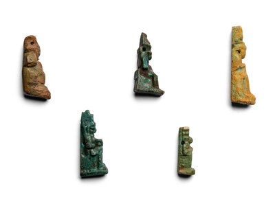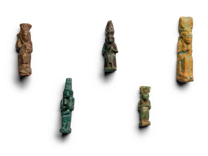Five Egyptian Faience Isis with Horus Amulets