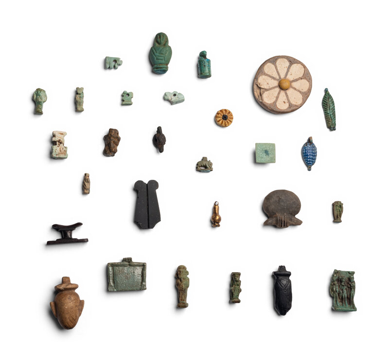 Forty-Six Egyptian Faience, Stone, and Terracotta Objects