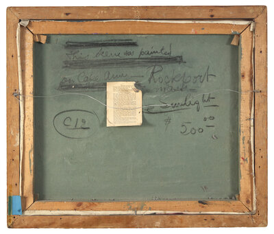 signed A. Thieme (lower left); also inscribed This scene painted on Cape Ann–Rockport, Mass–Sunlight (on the reverse)
