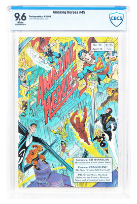 Lot includes a copy of the original comic (Fantagraphics, April 15, 1984; No. 45). Encapsulated and graded 9.6, by CBCS.