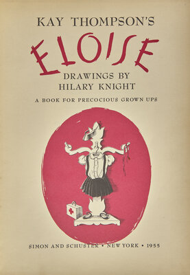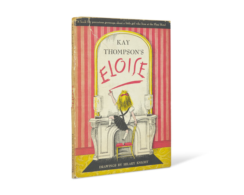New York: Simon and Schuster, 1955. First edition. 4to. 65 pp. Presentation copy, warmly inscribed by Thompson on front free endpaper to her illustrator, Hilary Knight: "For my darling Hilary--My God...can you even believe it...Isn't it wonderful--Oh Hilary--I love you Kay and Me Eloise." Profusely illustrated by Knight. Publisher's cream pictorial cloth, stamped in red and in black, unevenly toned, extremities lightly rubbed; illustrated endpapers; in original illustrated dust-jacket, small chipping and wear along edges, rear panel separated, spine chipped and starting, closed tear at top of front panel.