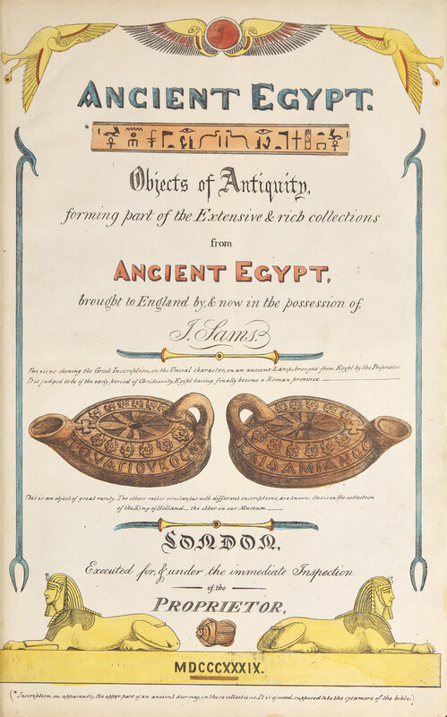 [Travel & Exploration] Sams, J(oseph). Ancient Egypt. Objects of Antiquity, forming part of the Extensive & rich collections from Ancient Egypt...