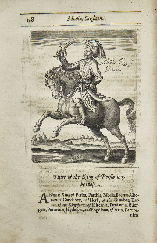 A handsome copy of Sir Herbert Thomas's travels, a significant early account of the Middle East and Asia. An historian and courtier to King Charles I, Herbert accompanied Sir Dodmore Cotton on a diplomatic mission to Persia in 1726. Following the latter's death, Herbert and others traveled extensively throughout the region, where he made observations on the people, their customs, as well as the region's animal life and flora and fauna. Upon his return to England in 1630, he compiled his account and published the above first edition. Of note are the engravings of the flying fish and the extinct dodo, as well as the section at the end recounting Welsh King Madoc ab Owain Gwynedd's mythic discovery of America.