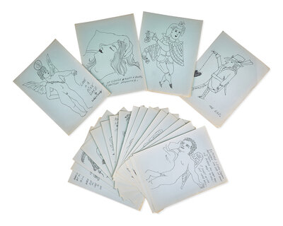 (New York: Privately Printed, 1953). First edition (one of only approximately 100 copies). Comprising the complete set of 25 off-set lithographs, printed on pale blue wove paper, loose as issued. Scattered light wear and some chipping along edges; edges lightly and unevenly toned; scattered spotting on versos. Each sheet measuring 11 x 8 1/2 in. (279 x 216 mm). Without wrapper. Feldman & Schellman IV. 27-50
