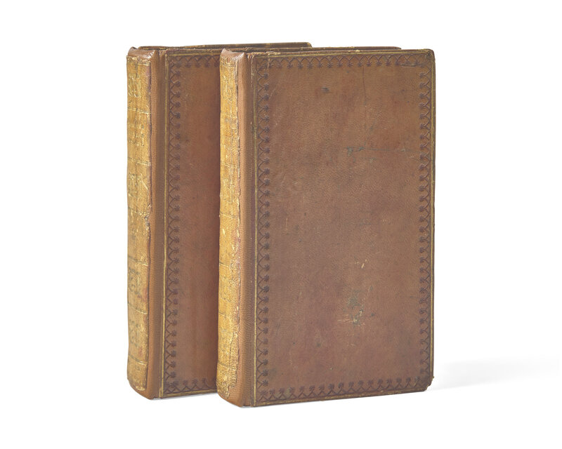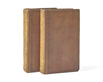 London: Stereotyped and Printed by J. M'Gowan. Published by F.C. & J. Rivingtons, et al., 1821. In two volumes. Third edition (first William Blake edition). 8vo. xii, 12, v-xxiv, 214; (ii), 215-592 pp. Edited by Robert John Thornton. Profusely illustrated with wood- and steel-engraved plates, including 27 (on 13 leaves) by or after William Blake. Full 19th-century tan calf, decorated in blind and in gilt, rebacked with original spines laid down, boards and extremities lightly worn; blue speckled edges; armorial book-plate of George R. Gardner on front paste-down of each volume; light offsetting from plates; scattered minor spotting. Bentley & Nurmi 411; Keynes 77