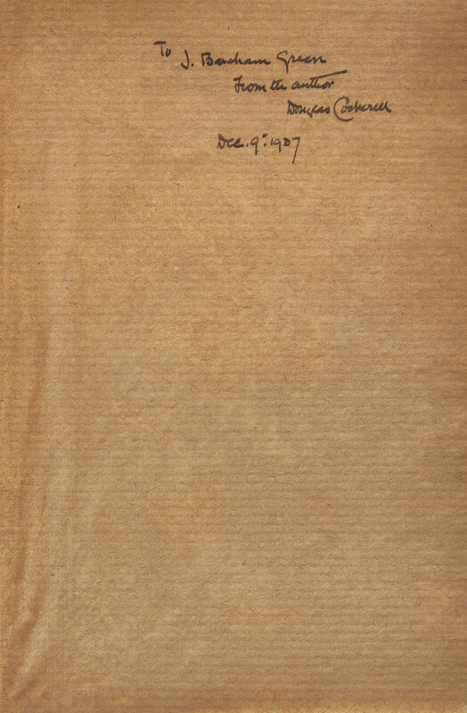London: Humphrey Milford,/Oxford University Press, 1929. First edition, presentation copy, inscribed on front free endpaper "To J. Barcham Green From the author Douglas Cockerell Dec. 9th 1907." 12mo. (x), 105, (1) pp. Publisher's binding of quarter tan cloth over marbled paper-covered boards, all edges trimmed; Light scattered foxing.