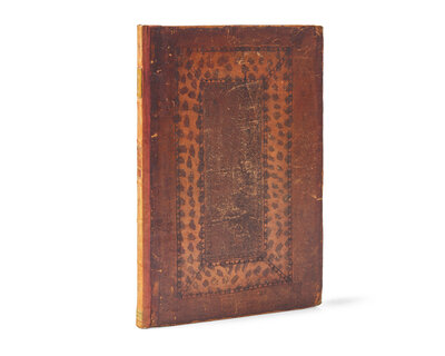 (London): P(ierce). Tempest, (ca. 1689-1709). First complete edition, early issue. Two volumes in one. Folio. Illustrated with two engraved title-pages and 72 unnumbered engraved plates (some plates watermarked "P IOLLY", ca. after 1699). Old speckled and mottled brown paneled calf, decorated in blind, rebacked, old leather and paper spine labels, boards and extremities scuffed and moderately worn, corners worn; red speckled edges; marbled endpapers; contemporary ownership signature at top of first engraved title-page ("Richd Butler"); repaired open tear at center of third plate in first volume; scattered spotting. Shesgreen, "The Editions, Imitations and Influences of Laroon's Cryes of the City of London" (in Studies In Bibliography XXXV, Bibliographical Society of the University of Virginia, 1982, pp. 258-271)