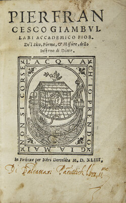 A fine copy of this curious work on the structure and dimensions of Dante's Hell, by Italian writer and teacher Pier Francesco Giambullari.