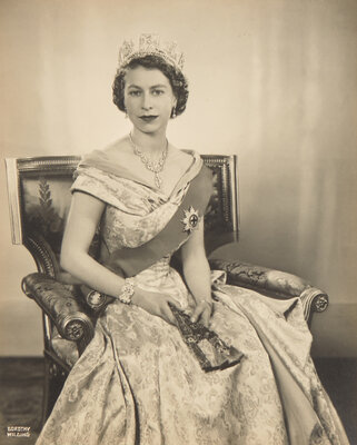 Fine and large pair of portrait photographs of Queen Elizabeth II and her husband Philip, taken during the year of her coronation.