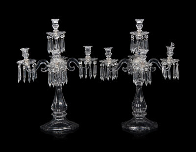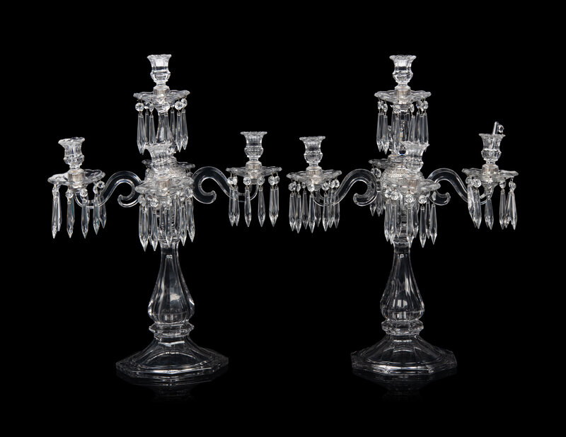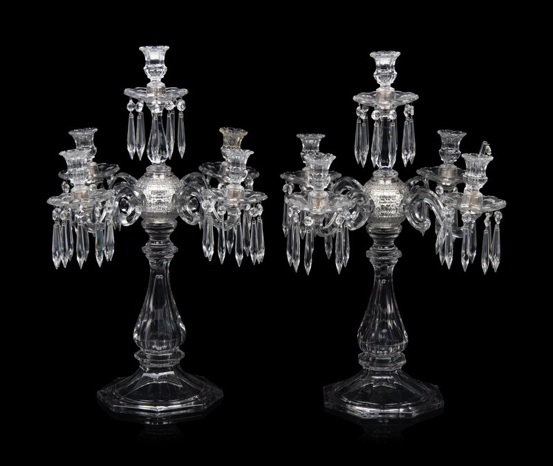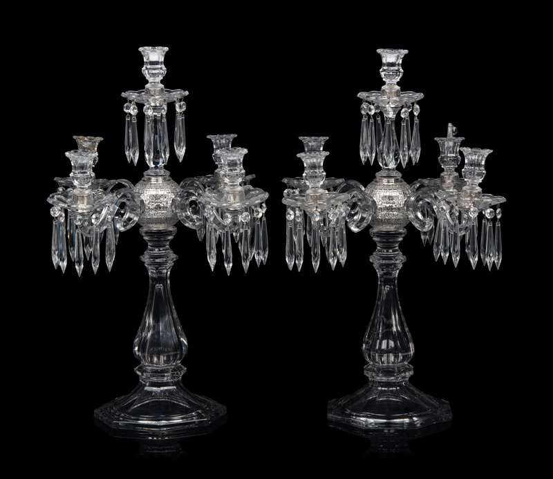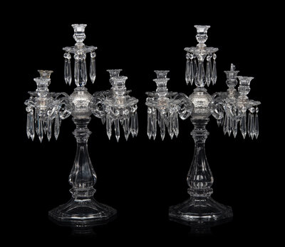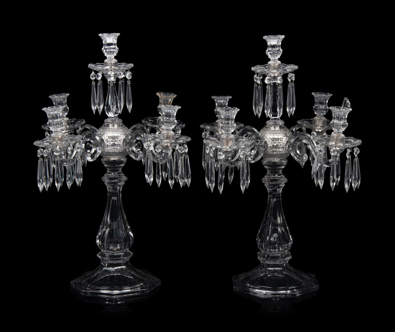 A Pair of Molded Glass Five-Light Candelabra