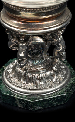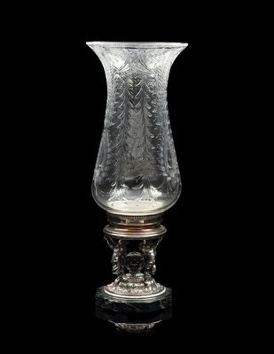 A Cut Glass, Silver-Plate and Marble Hurricane Candlestick