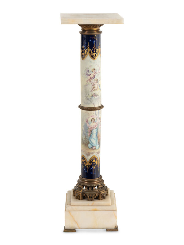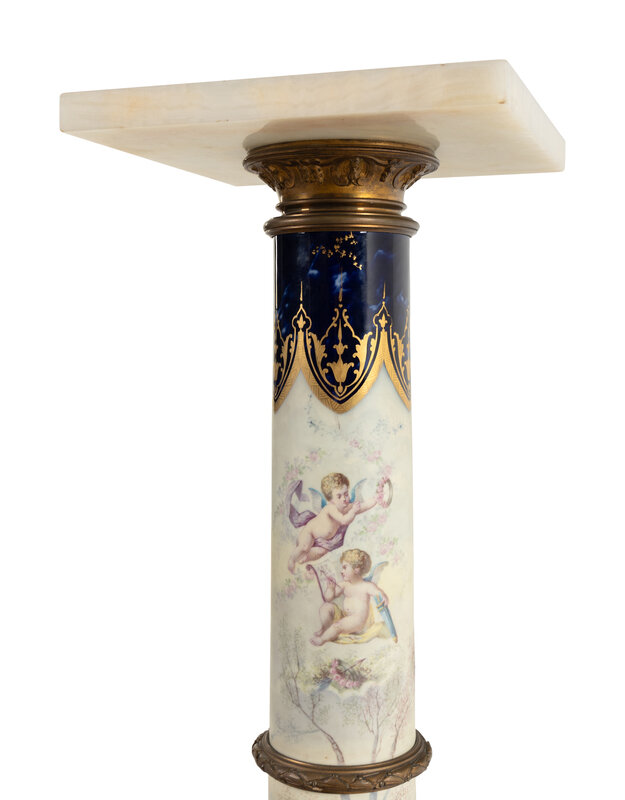 A Sèvres Style Porcelain, Gilt Bronze and Onyx Pedestal