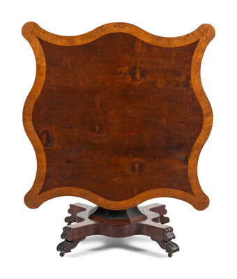 An American Classical Mahogany and Birdseye Maple Tilt-Top Table