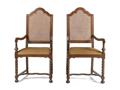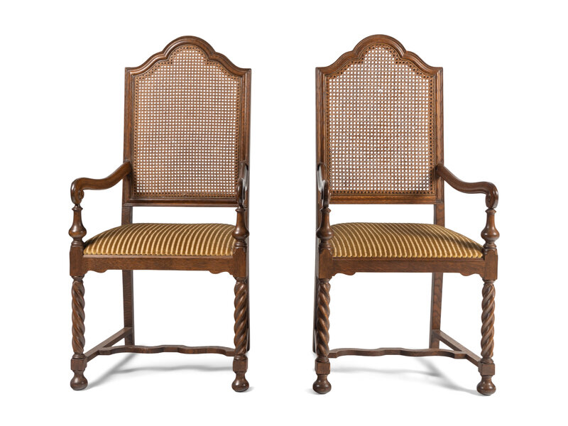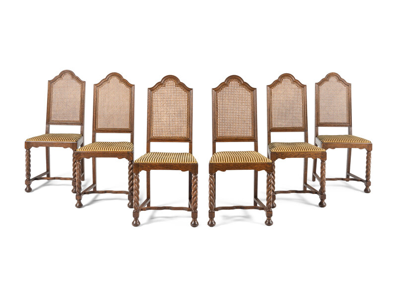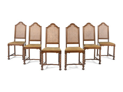 A Set of Eight William and Mary Style Oak Dining Chairs